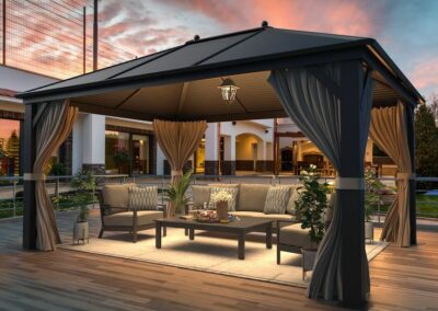 في شركة مظلات وسواتر الرياض، نفخر بتقديم أرقى وأجمل مظلات هرمية تناسب المشاريع الفاخرة والمعالم المعمارية البارزة. تتميز مظلاتنا الهرمية بتصاميم هندسية متطورة وخامات عالية الجودة، مما يجعلها قادرة على تحمل الأوزان الكبيرة والظروف الجوية القاسية. كما أننا نوفر لك خيارات واسعة من الأشكال والألوان والأحجام لتناسب طبيعة مشروعك والطراز المعماري المراد تحقيقه.